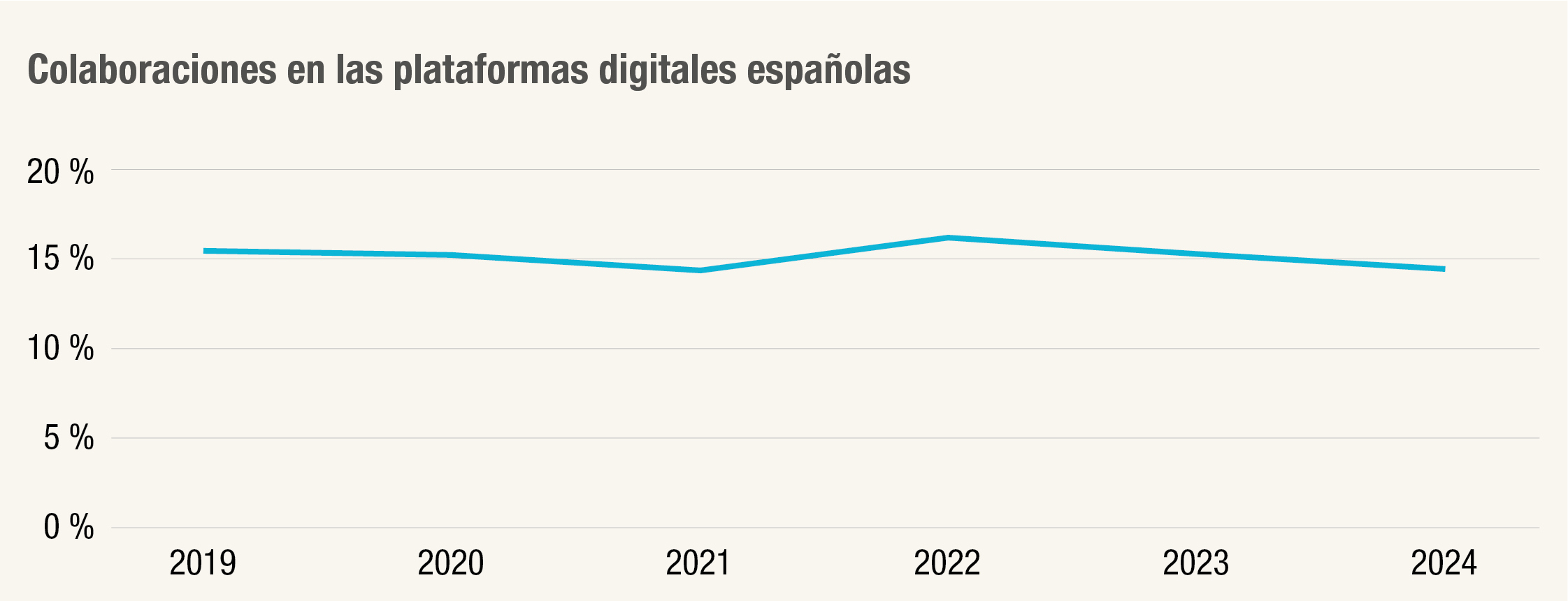 Pese a que las colaboraciones entre artistas latinos y españoles alcanzaron su boom en 2022, a lo largo de 2024 se han mantenido estables respecto al año anterior, representando, según datos de AIE, el 15% de lo que sonó en las plataformas digitales, con grandes éxitos a la cabeza como Bad Gyal de Saiko, JC Reyes y Dei V o 1000 cosas, de Lola Índigo y Manuel Turizo. Se demuestra así que son una forma eficaz de darse a conocer en nuevos países, combinar estilos y conectar con públicos más amplios.